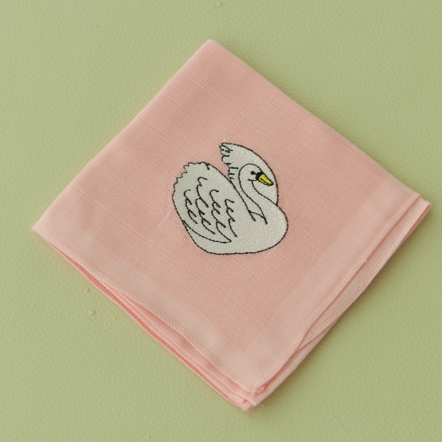 Samtweiches Babytüchlein rosa mit Schwanmotiv. Baumwollstoff, Waschbar, Masse ca. 60x60 cm.